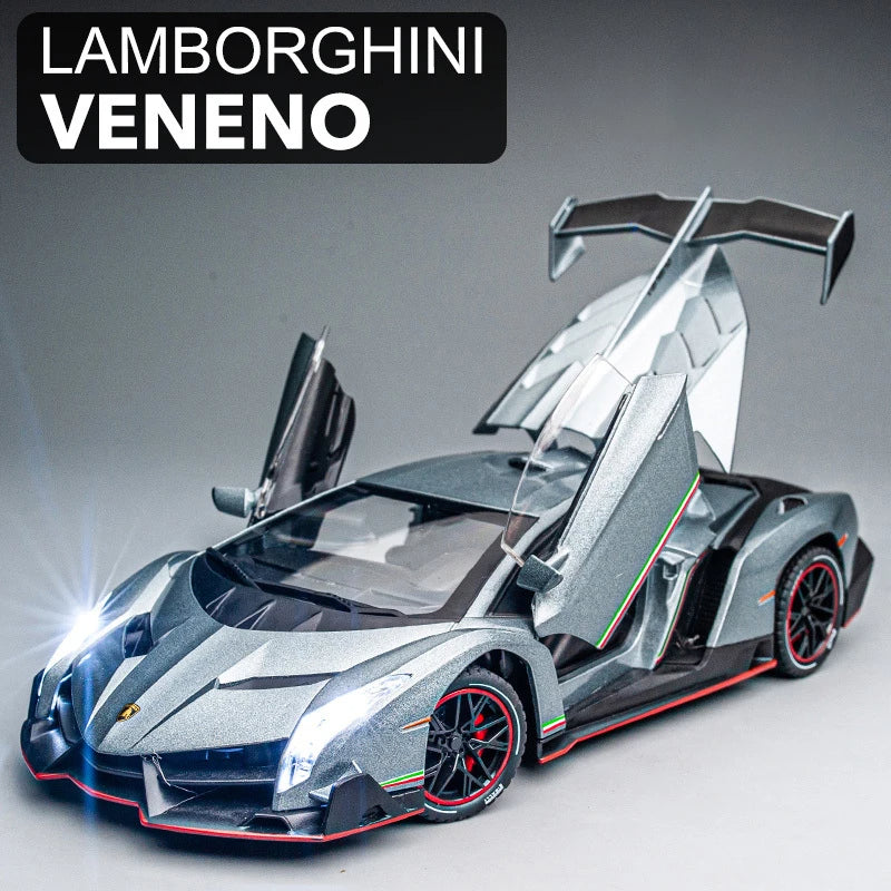 استمتع بالقوة المطلقة والتصميم المستقبلي للسيارة الفائقة لمبرجيني فينينو مع هذا النموذج المصغر بمقياس 1:24! صُنع بدقة عالية ليجسد الانسيابية العدوانية والتفاصيل الأنيقة للسيارة الحقيقية. قطعة مثالية لهواة جمع السيارات وعشاق لمبرجيني.