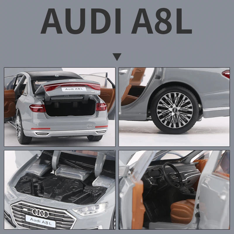 استمتع بالفخامة والأناقة الألمانية مع نموذج أودي A8L المصغر بمقياس 1:32! نسخة دقيقة تحاكي التصميم المهيب والخطوط الانسيابية للسيارة الأصلية، مثالية لهواة جمع السيارات الذين يقدّرون التفاصيل والدقة.