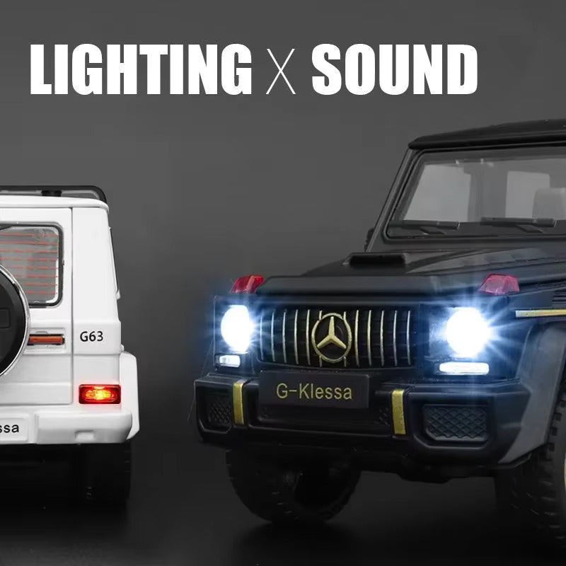 موديل سيارة داي كاست بخاصية السحب للأمام يُحيي أيقونة مرسيدس بنز G-63! شغّل صوت المحرك والأضواء بالضغط على العجلات الخلفية أو فتح الباب الأمامي. اضغط على عجلة القيادة لتشغيل صوت البوق، وسحبه للأمام على الأرض لمشاهدة السيارة تنطلق بسرعة. تجربة ممتعة وتفاعلية لجميع الأعمار!