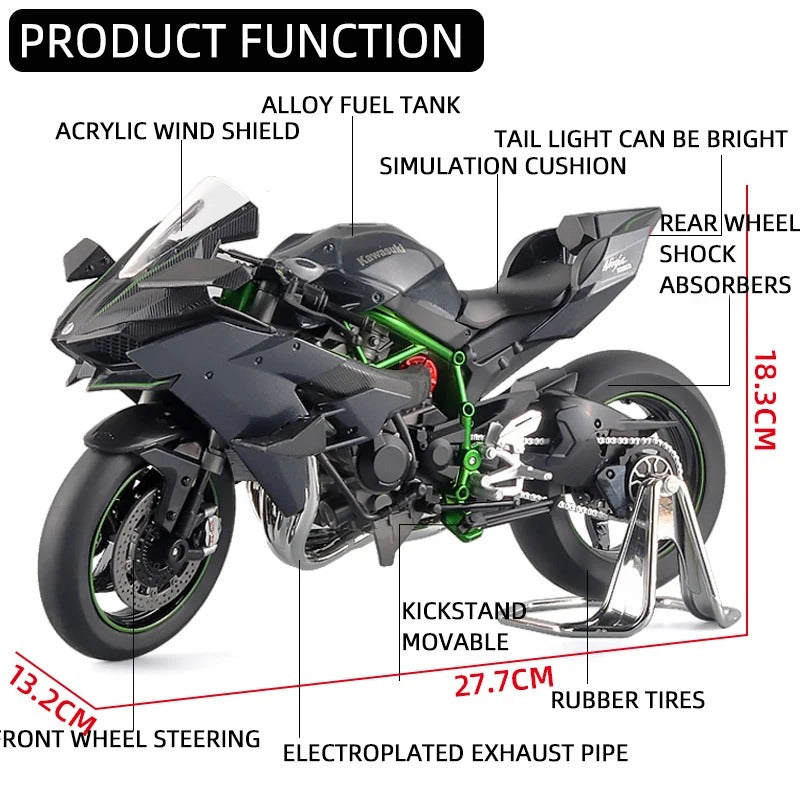 اشعر بإثارة أسطورة الدراجات النارية فائقة السرعة مع نموذج كواساكي نينجا H2R المصغر بمقياس 1:12 – نسخة دقيقة من واحدة من أقوى وأيروديناميكية الدراجات على الإطلاق. مصمم لهواة الجمع وعشاق السباقات، يقدم دقة، واقعية، وأسلوب جريء من كل زاوية.